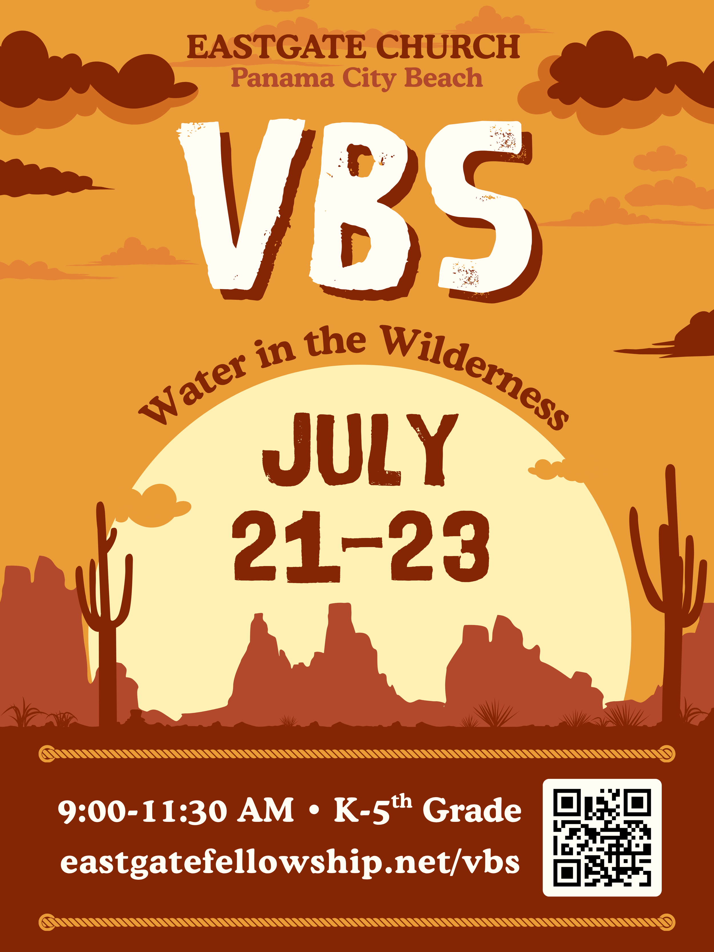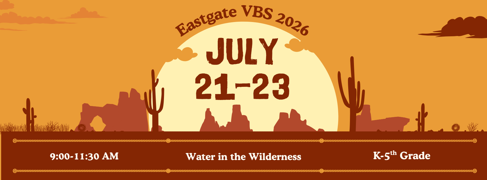 Round up the kids, and get ready for a fun Wild West adventure at VBS. Registration is now open for children entering Kindergarten in 2026 through those who just finished 5th grade. Each day will include a Bible-based lesson, crafts, games, and plenty of fun as we learn about God’s love together. It is going to be an exciting week your kids will not want to miss. Click the button below to register.